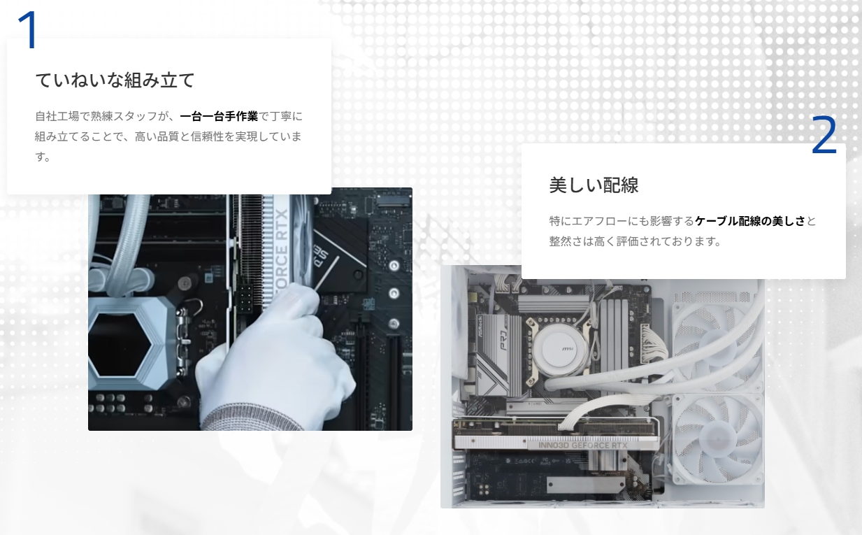 | 学生・初心者 | 手厚いサポートが受けられるBTOパソコンを探している |